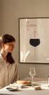 Nowoczesny i minimalistyczny plakat przedstawiający do połowy napełniony kieliszek do wina w połączeniu z zabawną typografią z napisem „And Now Wine”. Idealna dekoracja ścienna do kuchni, jadalni, piwnic z winami lub barów. Stylowa i pełna humoru funkcja dla miłośników wina.
