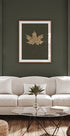 Spokojny i minimalistyczny plakat akwarelowy z pojedynczym liściem klonu na głębokim, ziemistym tle. Miękkie warstwy kolorystyczne w ciepłym beżu i stonowanym złocie podkreślają delikatne żyłki liścia i naturalne drobne ślady, a lekko teksturowane tło nadaje przytulny, ekskluzywny wygląd. Wyśrodkowany motyw sprawia, że plakat jest ponadczasowy i łatwy do stylizacji w domach nowoczesnych, skandynawskich, rustykalnych lub inspirowanych naturą. Idealna jako dekoracja jesienna, ale piękna także przez cały rok.