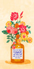 Urocza ilustracja kwiatowa przedstawiająca kolorowy bukiet w butelce połączona z inspirującym cytatem Henriego Matisse’a: „Zawsze są kwiaty dla tych, którzy chcą je zobaczyć”. Ciepłe odcienie, zabawne detale i podnoszące na duchu słowa sprawiają, że jest to idealne połączenie sztuki, natury i motywacji.