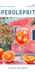 Odświeżająca akwarela przedstawiająca Aperol Spritz, przedstawiająca jasny kieliszek kultowego włoskiego koktajlu w otoczeniu soczystych pomarańczy i letniego ogrodu. To dzieło sztuki oddaje istotę la dolce vita i jest idealny do kuchni, jadalni i stylowych barów.