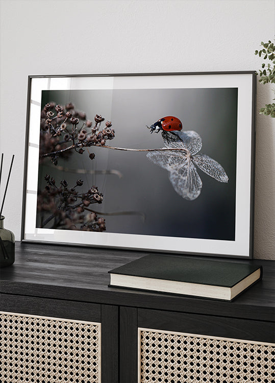 Biedronka na hortensji. autorstwa Ellen van Deelen – papier najwyższej jakości o gładkiej, matowej powierzchni i eleganckim wyglądzie. Matowe wykończenie redukuje odblaski i nadaje wyrafinowany, ponadczasowy wygląd. Mocne i trwałe, zapewniające długotrwałe użytkowanie, idealne zarówno do zastosowań profesjonalnych, jak i do ekspozycji dekoracyjnych.