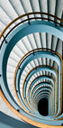 Fascynująca fotografia spiralnych schodów widzianych z góry, tworzących zawrotną iluzję nieskończoności. Dzięki płynnym krzywiznom, geometrycznej precyzji i modernistycznej elegancji to architektoniczne dzieło sztuki robi wrażenie w każdym wnętrzu.