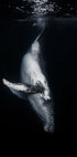 Zapierające dech w piersiach podwodne zdjęcie humbaka schwytanego na tle głębokiego morza czarnego. Ta uderzająca grafika przedstawiająca dziką przyrodę podkreśla majestatyczne piękno wieloryba, który szybuje tuż pod powierzchnią, emanując siłą, spokojem i zachwytem.