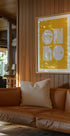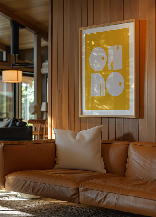 Wyraźnie minimalistyczne dzieło typograficzne, które wyraża „o nie” dzięki odważnym geometrycznym kształtom w stylu inspirowanym stylem retro. Dzięki żywemu żółtemu tłu i miękkim okrągłym kształtom plakat łączy w sobie humor, zabawę i nowoczesną estetykę graficzną, co czyni go uderzającym dziełem współczesnej sztuki ściennej.