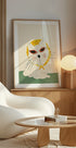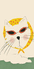 Kapryśna ilustracja w stylu retro przedstawiająca kota w eleganckich okularach przeciwsłonecznych i żółtym szaliku w kropki. Dzięki zabawnym liniom i nostalgicznej atmosferze z połowy stulecia, ten przedmiot łączy w sobie humor i urok i stanowi radosne oświadczenie dla miłośników kotów i wnętrz inspirowanych stylem retro.