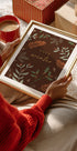 "Cozy Winter" bringer vinterhyggen ind i hjemmet med en stilren typografisk hilsen omgivet af frostkysset botanisk motiv. Dæmpede grønne og brune toner, snedrys og rolig komposition skaber en varm, nordisk julestemning – perfekt til entré, stue eller soveværelse. Design af Goed Blauw. Et roligt fokuspunkt i vinterhalvåret.