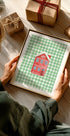 Udekoruj ściany przytulną świąteczną idyllą: czerwony dom z ośnieżonym dachem i złotym światłem w oknach, otoczony delikatnymi płatkami śniegu na świątecznym, zielonym tle w kratkę. Motyw równoważy urok retro i nordycką prostotę – idealny do przedpokoju, kuchni i pokoju dziecięcego, gdzie roztacza ciepło i świąteczną radość. Idealny prezent dla miłośników Świąt.