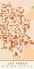 Sugestywna mapa Las Vegas zinterpretowana przez Emiliano Deificusa: gęsto spleciona sieć ulic i charakterystyczne bulwary narysowane głębokimi czarnymi liniami na tle ciepłych odcieni ziemi. Kolory pustyni odpowiadają precyzyjnej geometrii miasta, a drobne detale, takie jak rzeki, dzielnice i współrzędne, tworzą elegancki, nowoczesny wyraz. Kontrasty i faktury podkreślają rytm miasta.
