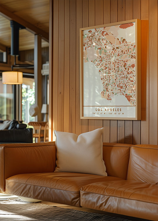 Black Maps Earth Tones 42 autorstwa Emiliano Deificusa przedstawia stylizowaną mapę Los Angeles w głębokich, ziemistych tonach. Ulice o drobnej siatce, wzgórza Hollywood i kontury wybrzeża tworzą elegancki, graficzny wzór, który oddaje rytm wielkiego miasta i doskonale prezentuje się zarówno w nowoczesnych, jak i klasycznych przestrzeniach. Powieś go solo lub na ścianie z galerią.