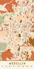 Black Maps Earth Tones 49 autorstwa Emiliano Deificusa łączy sugestywny plan miasta Medellín z głębokimi odcieniami ziemi i kontrastującą czernią. Drobno narysowane ulice, dzielnice i kontury tworzą graficzny wzór, który równoważy spokój i puls – idealny do nowoczesnych ścian z wyczuciem miejskiej poezji. Stylowy punkt centralny.