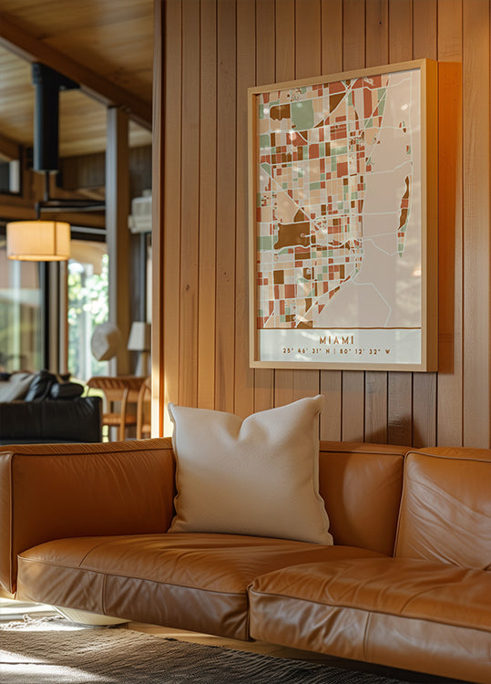 Black Maps Earth Tones 53 autorstwa Emiliano Deificusa to klimatyczny plakat z mapą miasta w głębokich barwach ziemi. Cienkie linie rysują ulice, wybrzeże i dzielnice Miami w eleganckim, graficznym wyrazie. Minimalistyczny i miejski, dodaje ścianie spokoju i charakteru oraz zaprasza do zwiedzania miasta. Idealnie sprawdzi się w salonie, biurze czy przedpokoju.