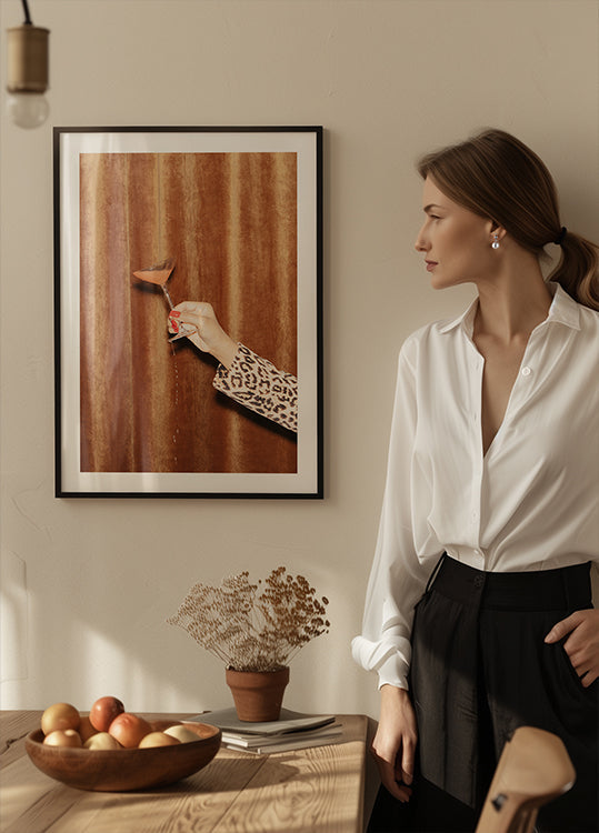 Białe jedzenie: Motyw jest drukowany z białą, matową ramką wokół motywu. Daje to czysty i elegancki wyraz, który podkreśla temat i nadaje wygląd inspirowany galerią.