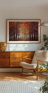 - Zamontowany na drewnianej ramie o grubości ok. 4 cm
