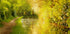 Oszałamiający malarski krajobraz przedstawiający spokojną ścieżkę nad rzeką skąpaną w złotym świetle słońca. Bujne zielone liście harmonijnie łączą się z ciepłymi odcieniami, przywołując pogodne piękno letniego dnia. Ta grafika wnosi ciepło i spokój do każdego wnętrza.