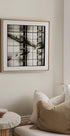 Autor: Mario Benz: Surowe, graficzne spojrzenie na dzielnicę rządową Berlina – monumentalną fasadę w ścisłej siatce okien i betonu, przeciętą ostrymi schodami przecinającymi obraz po przekątnej. Monochromatyczna paleta w odcieniach lekko sepii zapewnia spokój, a niewielka postać ludzka wyznacza skalę i sugeruje puls miasta.