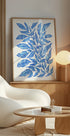 Delikatny nadruk botaniczny z ręcznie malowanymi niebieskimi liśćmi na białym tle. Akwarela łączy w sobie minimalizm z elegancją, dzięki czemu jest uniwersalnym wyborem do nowoczesnych wnętrz. Idealny do dodania świeżego i naturalnego akcentu do każdego pomieszczenia.