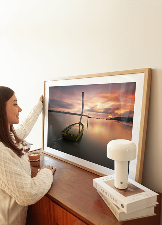 - Zamontowany na drewnianej ramie o grubości ok. 4 cm