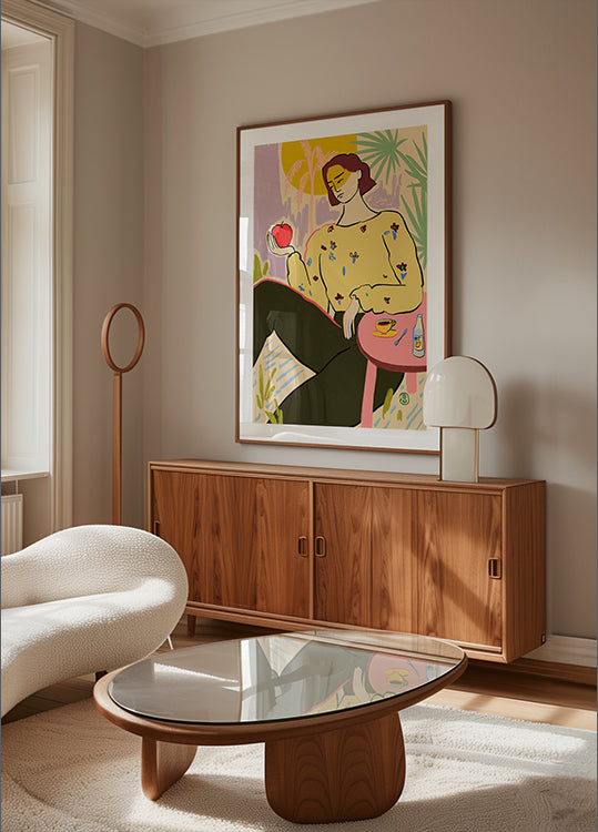 Kobieta z jabłkiem autorstwa Sandry Poliakov – papier najwyższej jakości o gładkiej, matowej powierzchni i eleganckim wyglądzie. Matowe wykończenie redukuje odblaski i nadaje wyrafinowany, ponadczasowy wygląd. Mocne i trwałe, zapewniające długotrwałe użytkowanie, idealne zarówno do zastosowań profesjonalnych, jak i do ekspozycji dekoracyjnych.