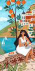 Kobieta z plakatu podróżniczego na wybrzeżu Morza Śródziemnego