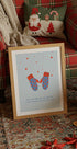 Uwielbiający zimę plakat Ohkimiko: dwie miękkie, dzianinowe rękawiczki, które spotykają się w kształcie serca, otoczone opadającymi płatkami śniegu i chłodnymi niebieskoszarymi odcieniami. Poetycki hołd dla chłodu i miłości - tworzy przytulność w salonie, przedpokoju lub pokoju dziecięcym, za pomocą prostej, nordyckiej ciszy i ciszy, graficznej magii. Idealny jako prezent miłosny w okresie Adwentu i Bożego Narodzenia.