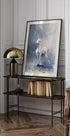 Sugestywny plakat Giorgio Gostiego: malowniczy motyw koni w zimowym świetle, uchwycony luźnymi, szkicowymi pociągnięciami pędzla. Potężne sylwetki poruszają się cicho po śniegu, gdzie stonowane odcienie i lekka faktura tworzą spokój, ruch i poezję w jednym - idealne do wprowadzenia elegancji natury do domu.