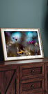 - Zamontowany na drewnianej ramie o grubości ok. 4 cm