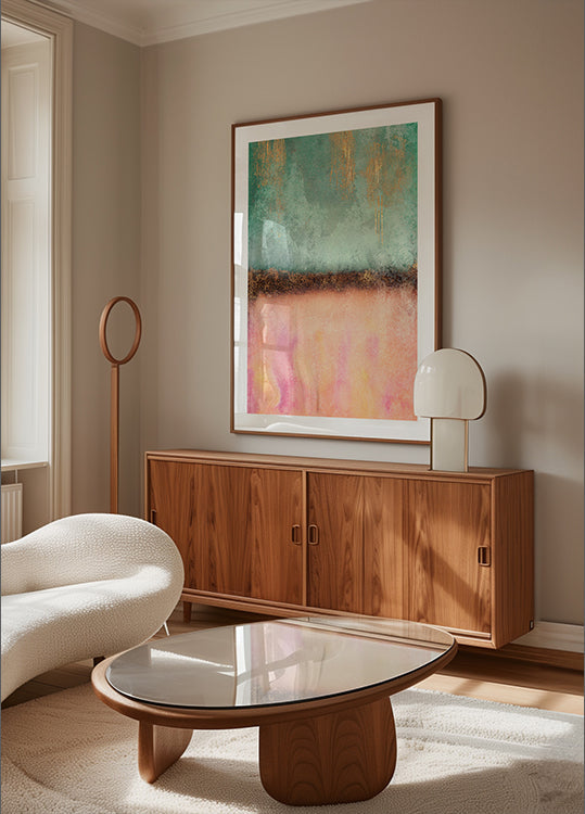 - Zamontowany na drewnianej ramie o grubości ok. 4 cm