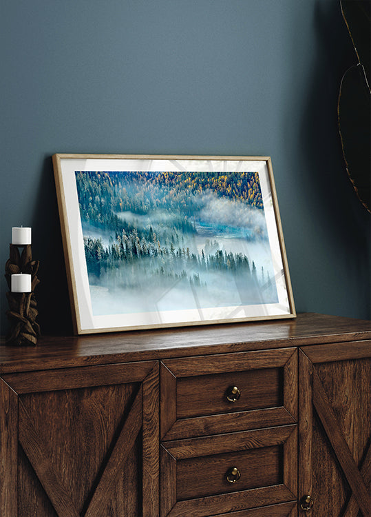 - Zamontowany na drewnianej ramie o grubości ok. 4 cm