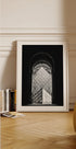 Urzekająca czarno-biała fotografia piramidy w Luwrze otoczonej łukowym wejściem, łącząca nowoczesną architekturę szklaną z historyczną wielkością Paryża. Wyrażający sztukę, historię i ponadczasową elegancję, ten nadruk staje się nieodzownym elementem wnętrz inspirowanych kulturą, podróżami i kultowymi zabytkami.