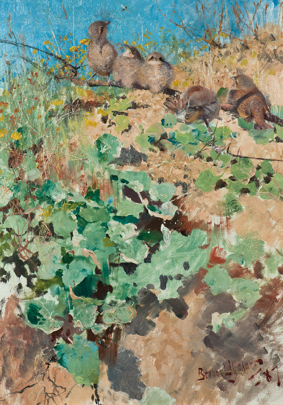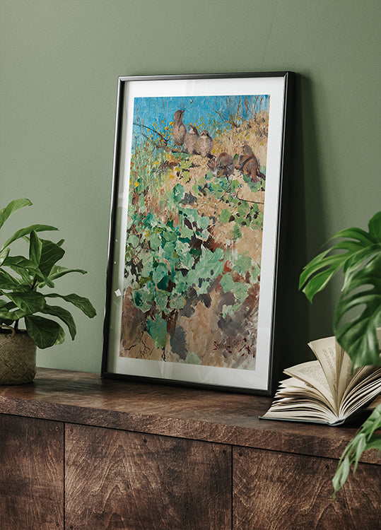 Plakat z pisklętami dzierzby czerwonogrzbietej