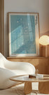 Niebieski plakat z nadrukiem drzeworytu