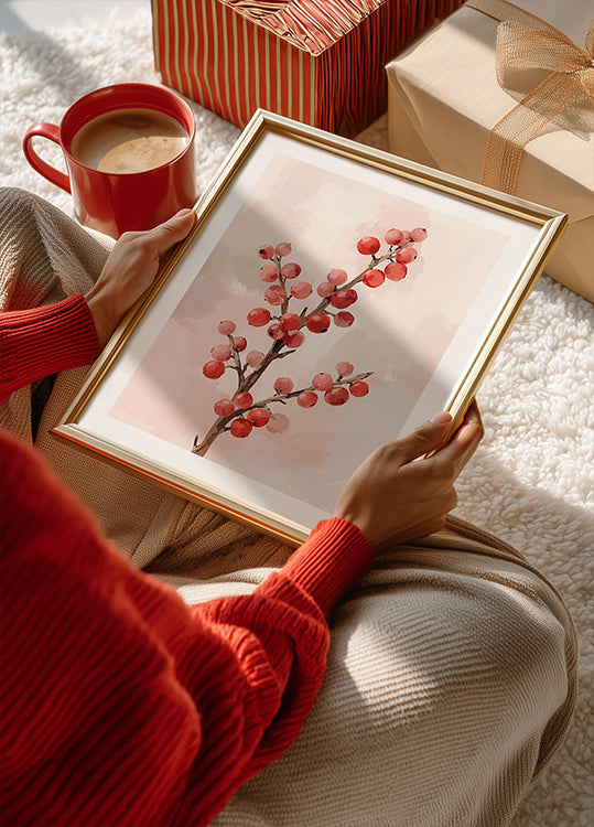 Roter Beerenzweig oddaje poezję zimy: elegancka gałąź z ciemnoczerwonymi jagodami, która wyraźnie wyróżnia się na miękkim, pastelowym tle. Spokojna kompozycja i stonowana kolorystyka nadają nordyckiego, minimalistycznego wyrazu, który bez hałasu tworzy świąteczną atmosferę - idealnie sprawdzi się w przytulności, przedpokoju czy salonie. Odrobina natury, która pasuje zarówno do nowoczesnych, jak i klasycznych pomieszczeń.