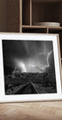 Niekończąca się droga przecina pustynne wydmy w kierunku odległych gór, gdy czarne chmury zbierają się i pozwalają białym ostrzom błyskawic przecinać nocne niebo. Monochromatyczny dramat wzmacnia ciszę przed burzą i kieruje wzrok ku horyzontowi. Sztuka fotograficzna Yvette Depaepe, pełna mocy, głębi i perspektywy. Kultowy element przyciągający wzrok w każdym wnętrzu.