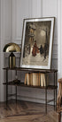 Nastrojowy plakat w stylu vintage celebrujący Cyganerię Giacomo Pucciniego: zimowy wieczór w śniegu i świetle księżyca, podczas którego mała grupa gromadzi się przed fasadą teatru. Czerwone akcenty przełamują chłód, sylwetki drzew otaczają scenę, a na ilustracji historycznej można wyczuć pieśń, przyjaźń i poezję wielkiego miasta. Hołd dla romantyzmu, magii opery i zimowej poezji.