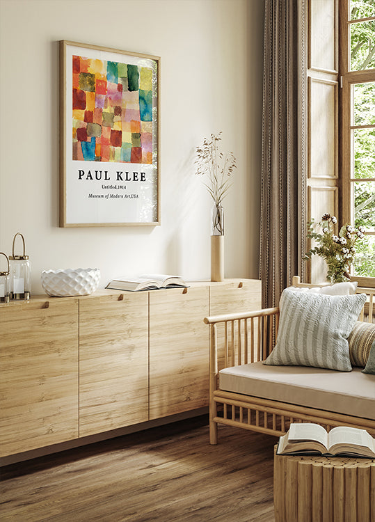 Żywe i dynamiczne dzieło Paula Klee z 1914 roku, przedstawiające abstrakcyjną mozaikę żywych barw. Ta akwarela ukazuje wyjątkowe zdolności Klee w zakresie teorii koloru i jego charakterystyczny styl abstrakcji geometrycznej. Gra ciepłych i chłodnych barw nadaje dziełu rytmiczny i harmonijny charakter, idealny do kolekcji sztuki nowoczesnej.
