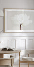 Biała piwonia rozwija swoje jedwabiste płatki na delikatnym szarym tle, gdzie delikatne różowe odcienie i delikatne zielone pociągnięcia tworzą spokój i poezję. Prosta martwa natura dodaje pomieszczeniu ponadczasowej elegancji i nordyckiego minimalizmu – idealnie nadaje się jako cichy punkt centralny w salonie, sypialni lub kreatywnych zakątkach. Dyskretny hołd dla piękna natury.