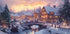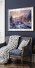 Klimatyczne miasteczko bożonarodzeniowe rozwija się w miękkim śniegu, gdzie drobne płatki śniegu spadają na przytulne domy i sosny. Ludzie poruszają się pomiędzy jasnymi oknami i ciemnymi ulicami, a pociągnięcia pędzlem nadają obiektowi malowniczy, ponadczasowy urok. Idealny do uchwycenia ciepła w mroźnym blasku zimy. Powieś go w salonie, aby stworzyć przytulną świąteczną atmosferę.