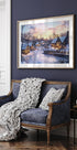 Wejdź do spokojnego zimowego miasteczka, gdzie płatki śniegu cicho spadają na zaśnieżone dachy, sosny i zamarznięte lodowisko. Małe postacie poruszają się pomiędzy ciepłymi światłami w oknach, a czyste zimowe niebo nadaje scenie nostalgiczny blask. Klimatyczny hołd dla przytulności i zimowego spokoju. Idealnie nadają się do tworzenia zimowej magii w salonie, przedpokoju czy pokoju dziecięcym.