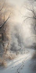 Spokojny zimowy krajobraz ukazuje się w stonowanych barwach: oszronione jodły, miękki śnieg i lekka mgła zasłaniająca horyzont. Światło jest chłodne i przejrzyste, stwarza wrażenie ciszy i kontemplacji. Atmosferyczne studium natury autorstwa Andreasa Magnussona dla cichych zakątków domu. Idealny do stworzenia spokoju w salonie, sypialni czy biurze.