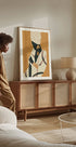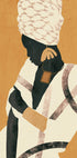 Przykuwający wzrok minimalistyczny plakat przedstawiający elegancką Afrykankę z odważną biżuterią i wzorzystą chustą na głowie. Ziemiste odcienie żółci i czerni łączą nowoczesną abstrakcję z bogactwem kulturowym, czyniąc go mocnym elementem we wnętrzach nowoczesnych i inspirowanych boho.