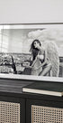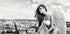 Dramatyczna czarno-biała grafika przedstawiająca kobietę z anielskimi skrzydłami, spoglądającą na rozległą panoramę miasta. Łącząc fantazję i realizm miejski, ten uderzający obraz przywołuje siłę, piękno i tajemnicę – anielską obecność na tle panoramy nowoczesnej metropolii.