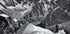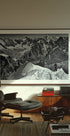 Oszałamiająca czarno-biała fotografia alpinisty stojącego na wąskim grzbiecie śnieżnym we francuskich Alpach. Dramatyczny widok obejmuje postrzępione szczyty, głębokie doliny i lodowce rozciągające się aż po horyzont. Mocny hołd dla przygody, wytrzymałości i piękna alpejskich krajobrazów.