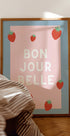 Dodaj francuskiego uroku swojemu domowi dzięki tej legendzie Bon Jour Belle-plakat. Otoczony czerwonymi truskawkami w delikatnych pastelowych kolorach, łączy w sobie słodycz i styl. Idealny do kuchni, kawiarni lub jako wesoła dekoracja ścienna, zapewniająca świeży powiew koloru i codzienny dodatek do Twojej przestrzeni.