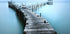 Spokojna fotografia z długim czasem ekspozycji drewnianego mostu Carrasqueira w Portugalii rozciągającego się w spokojnych turkusowych wodach. Jedwabiste morze i rustykalne deski tworzą ponadczasową i spokojną nadmorską scenę, idealną do spokojnych dekoracji ściennych.