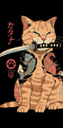 Odważna i zabawna grafika autorstwa Vincenta Trinidada przedstawiająca wytatuowanego kota samuraja z kataną w pysku. Ten inspirowany Japonią projekt łączy w sobie tradycyjne motywy tatuażu koi z nowoczesną popkulturą, dzięki czemu jest wyjątkowym dziełem sztuki ściennej dla miłośników kotów i fanów japońskiej estetyki.