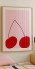 Zabawna i żywa minimalistyczna grafika z dwiema charakterystycznymi czerwonymi wiśniami na delikatnym różowym tle. Dzięki pop-artowemu stylowi i czystym liniom mebel wnosi do wnętrza nowoczesny i świeży powiew, idealny do kuchni, jadalni i współczesnych dekoracji ściennych.