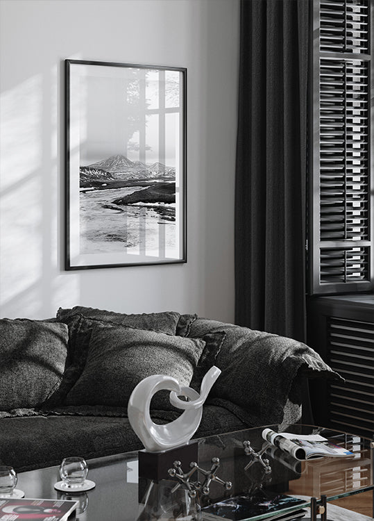 Plakat czarno-biały z zamarzniętą rzeką na Islandii