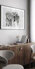 Dwie zebry spotykają się w czułym uścisku na kenijskiej sawannie na tym poetyckim czarno-białym plakacie ze zdjęciem. Tender Moment autorstwa fotografa Johna Fana oddaje spokój, bliskość i ponadczasową elegancję w jasnym wyrazie, gdzie graficzny rytm pasków staje się minimalistycznym symbolem miłości i wspólnoty. Hołd dla poezji natury.