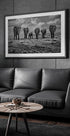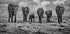 Surowe, czarno-białe zdjęcie dzikiej przyrody przedstawiające stado słoni wędrujących po afrykańskiej sawannie. Obraz oddaje zarówno siłę, jak i czułość i symbolizuje rodzinę, ochronę i jedność w naturze.