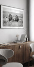 Dwa majestatyczne samce lwów odpoczywają obok siebie na smaganej wiatrem sawannie, ich grzywy poruszają się na wietrze, a ich spojrzenia są spokojne, ale czujne. Czarno-biała kompozycja podkreśla siłę, prezencję i dzikie piękno – ponadczasowy moment safari z Serengeti, sfotografowany przez Nicolása Merino. Można wyczuć ich bliską więź i królewski spokój.